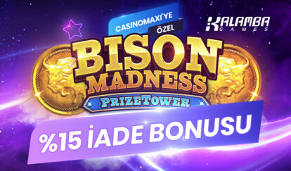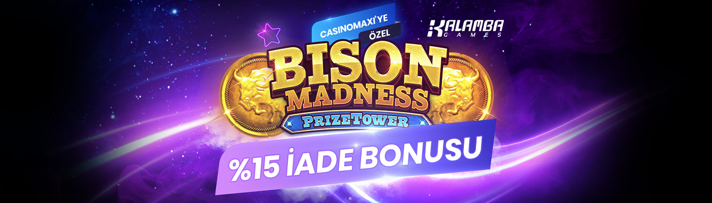 - İade Bonusu, kullanıcının kampanyaya katıldığı andan yukarıda belirtilen kampanya bitiş tarihine kadar Bison Madness PrizeTower slotunda oluşan net kayıpların %15 oranı olarak hesaplanır.